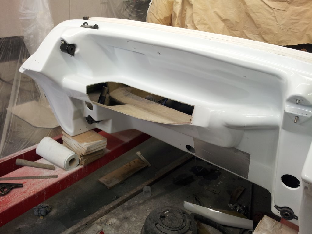 hits the main tub so peter made another fuel tank to fit behind the seats he cut out quite a bit to clear the engine which rendered the fuel tank space compromised.